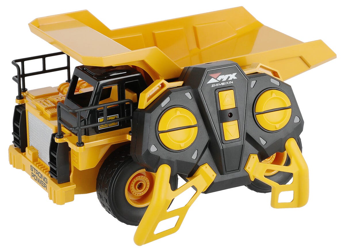 • Radiostyrd tipptruck för barn – kör framåt, bakåt, sväng höger och vänster.