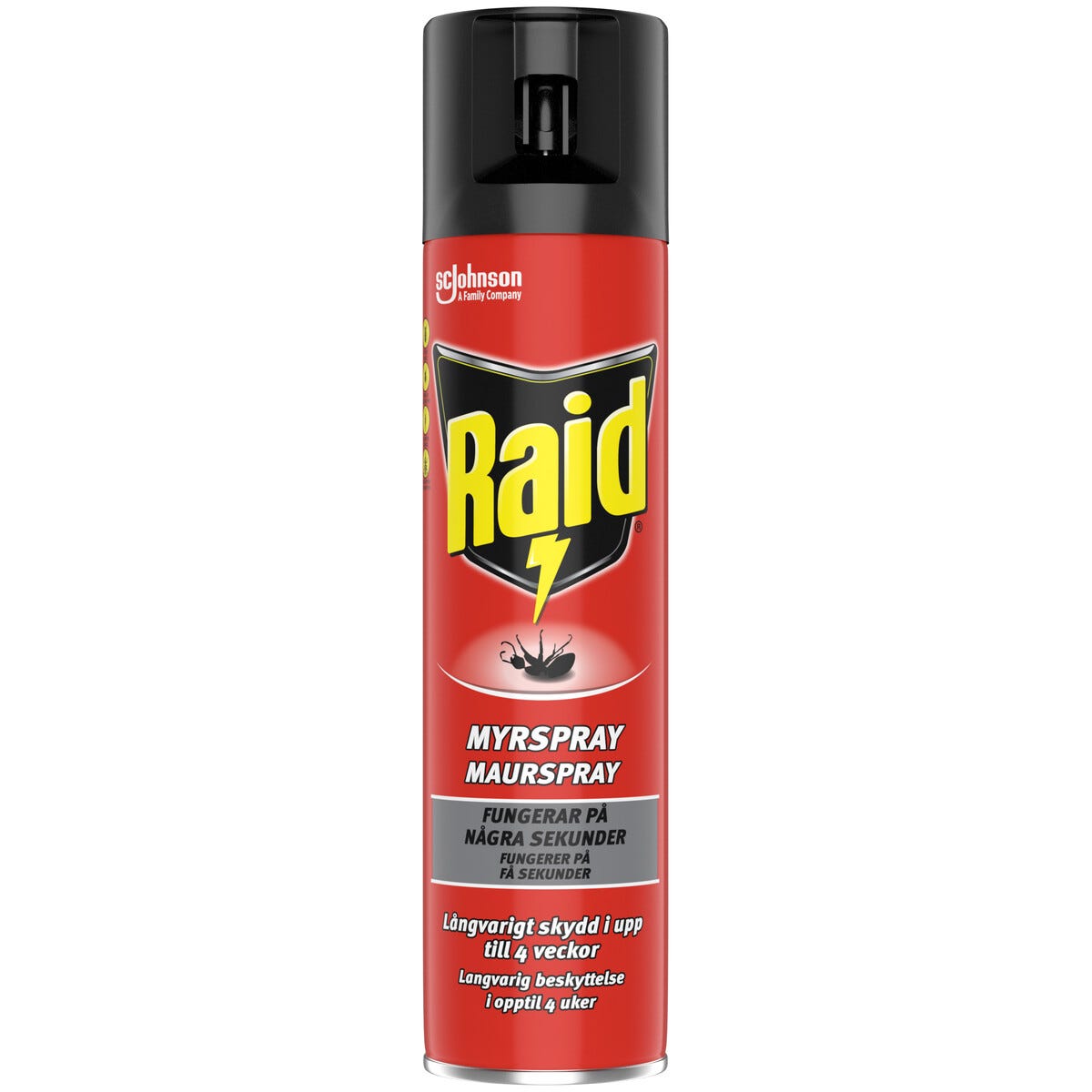 • Raid myrspray – ger långvarigt skydd, upp till 4 veckor inomhus.