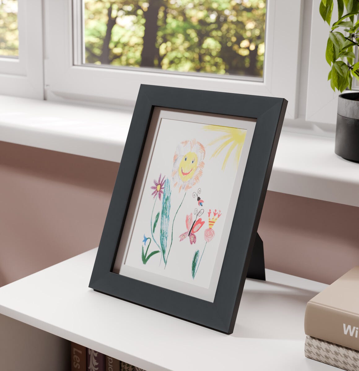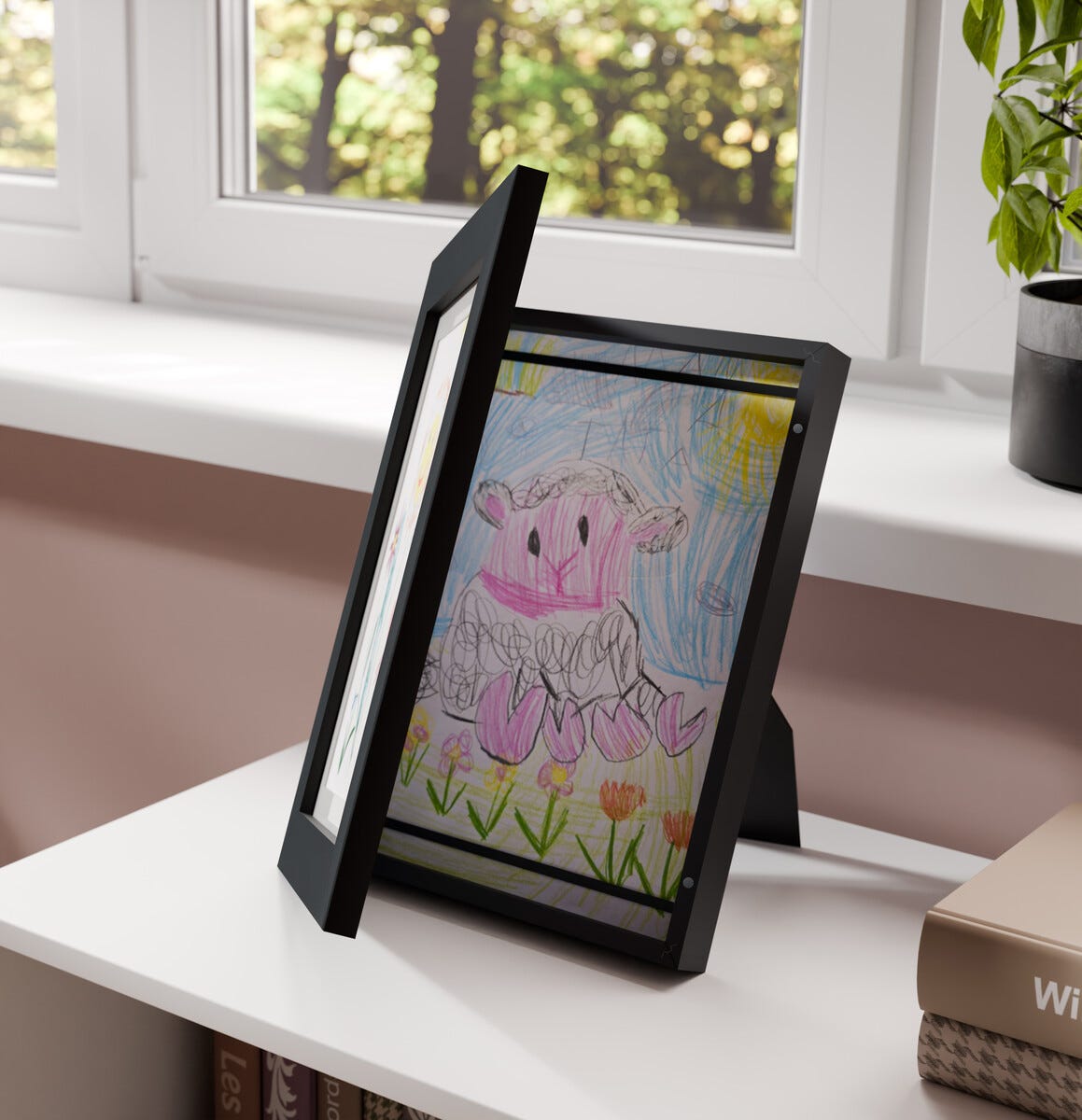 • Öppningsbar ram för teckningar – ramen rymmer flera teckningar samtidigt.