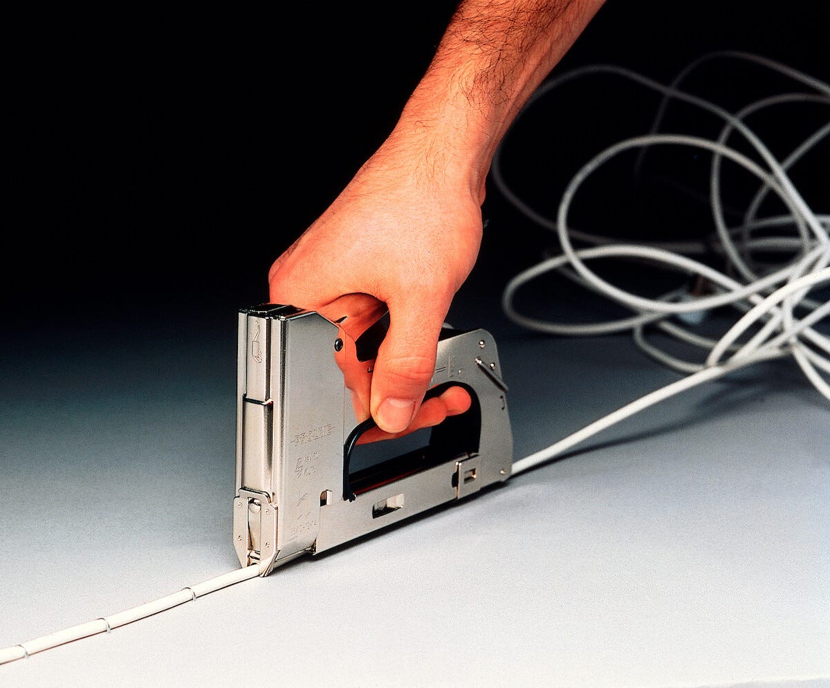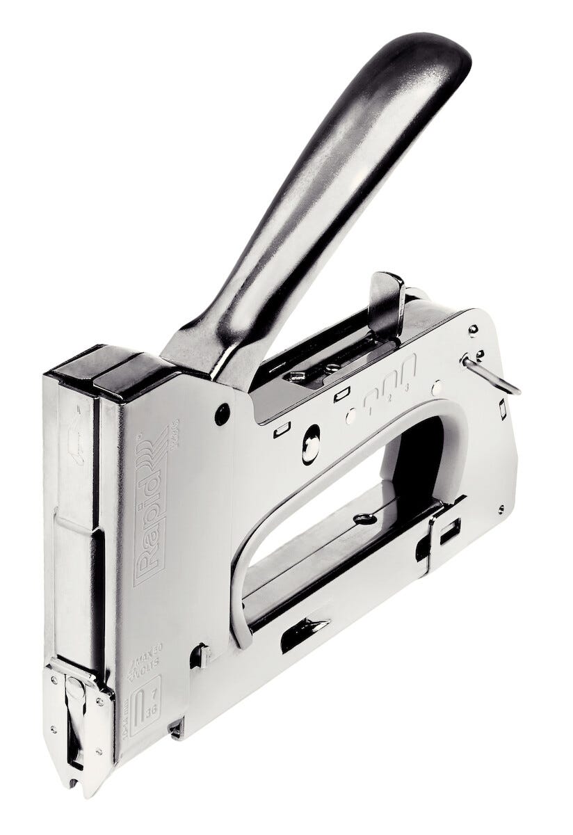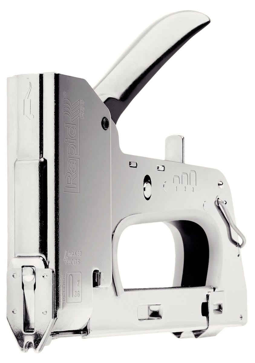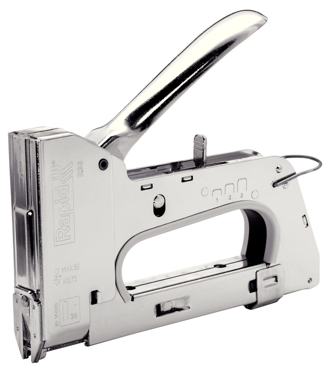 • Häftpistol för fastsättning av lågspänningskablar på max 50 V, t.ex. data-, högtalar-, telefon- och antennkablar.