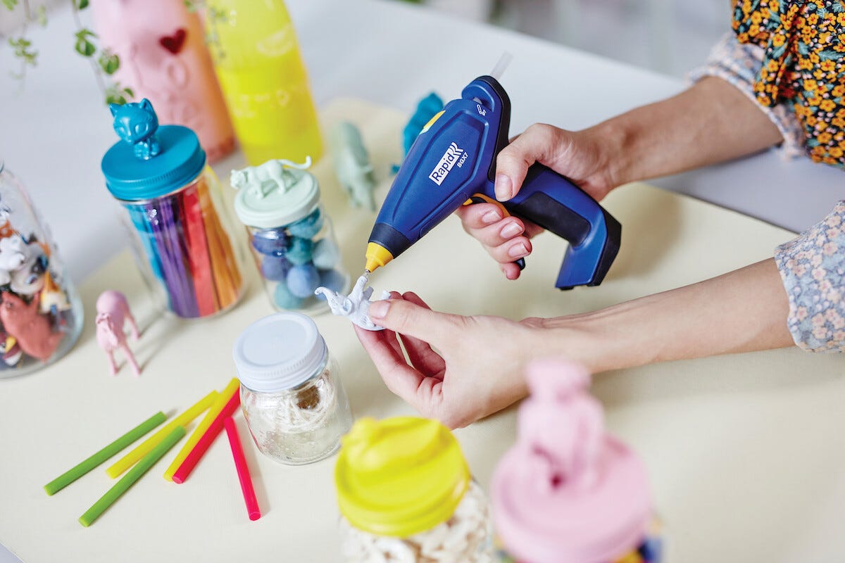 • Pyssla, laga och dekorera sladdlöst med smältlim.