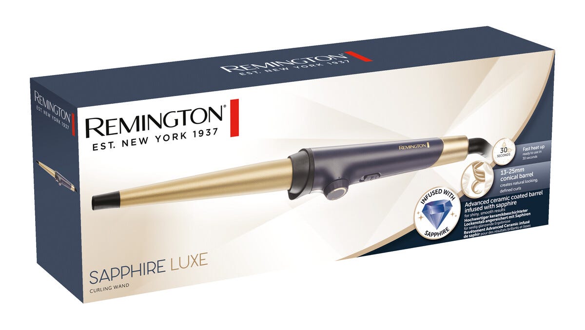 • Remington Sapphire Luxe konisk locktång med keramisk beläggning.