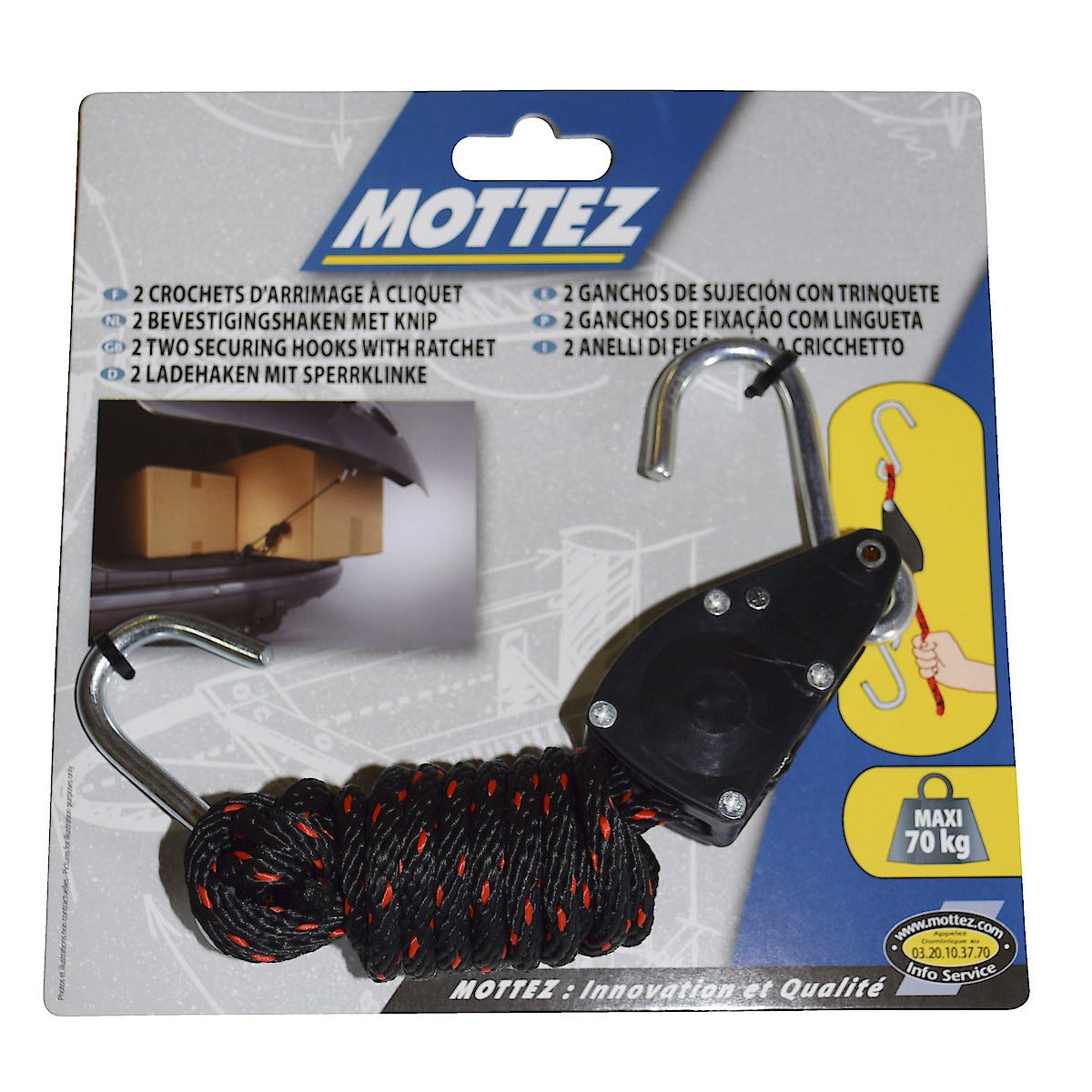 • Rep med kraftigt lås och krokar.