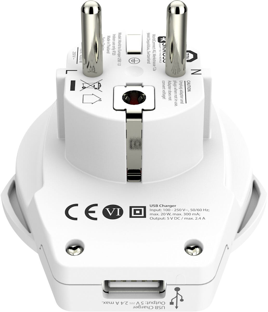 • Reseadapter och USB-laddare i ett.