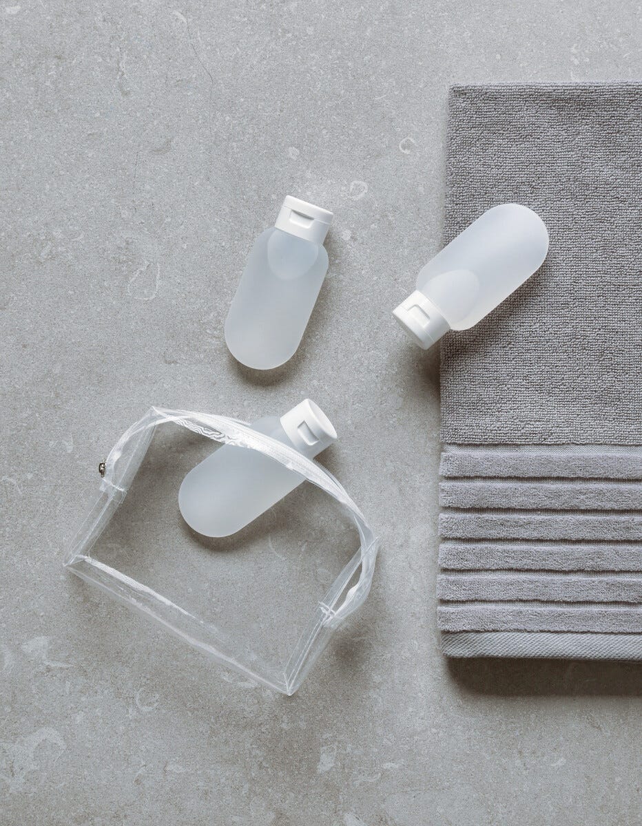 • Resekit med mjuka små flaskor – lätt att trycka ut innehållet.
