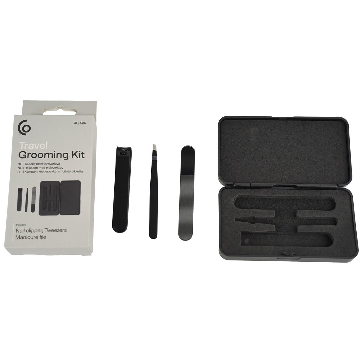 • Kompakt kit med fil, pincett och nagelklippare – lätt att ta med på resan.