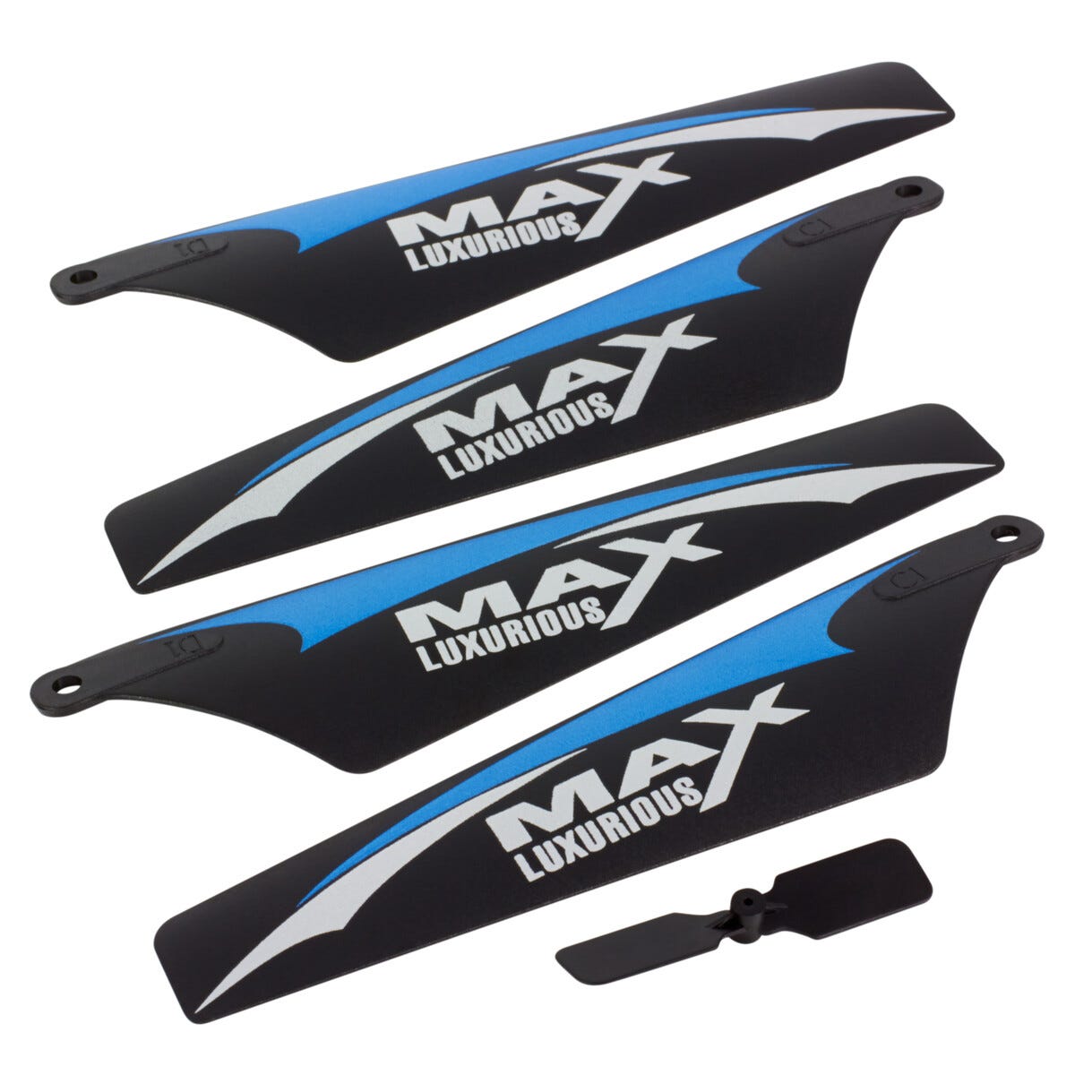 Kit med 4 huvudrotorblad och 1 bakre rotorblad.