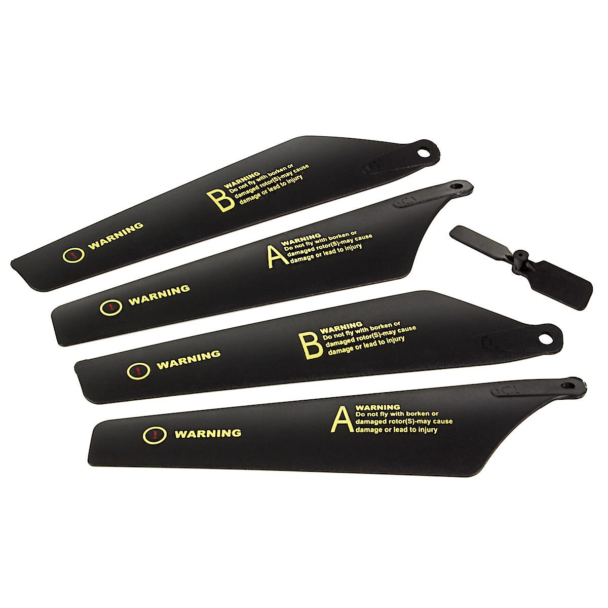 Kit med 4 huvudrotorblad och 1 bakre rotorblad.