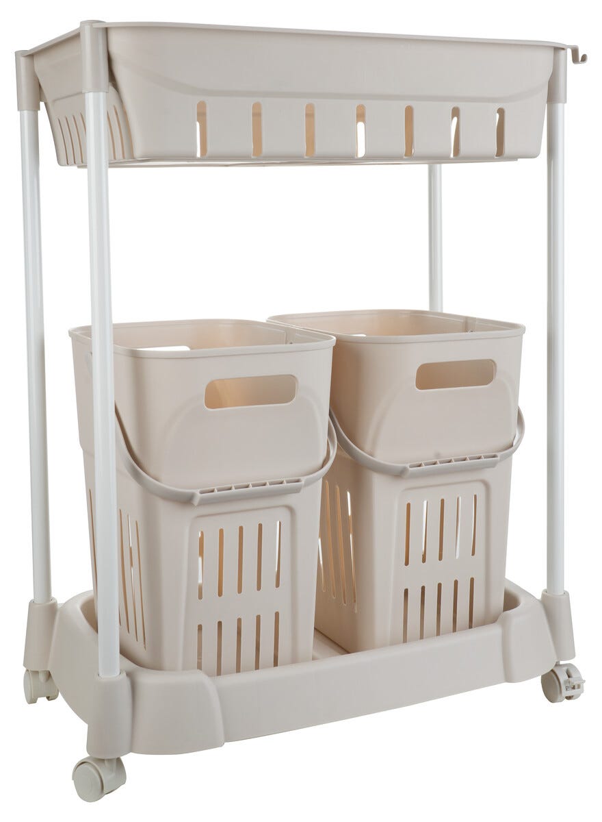 Rullvagn med 2 tvättkorgar och 1 korg, 52,5 x 34 x 70 cm