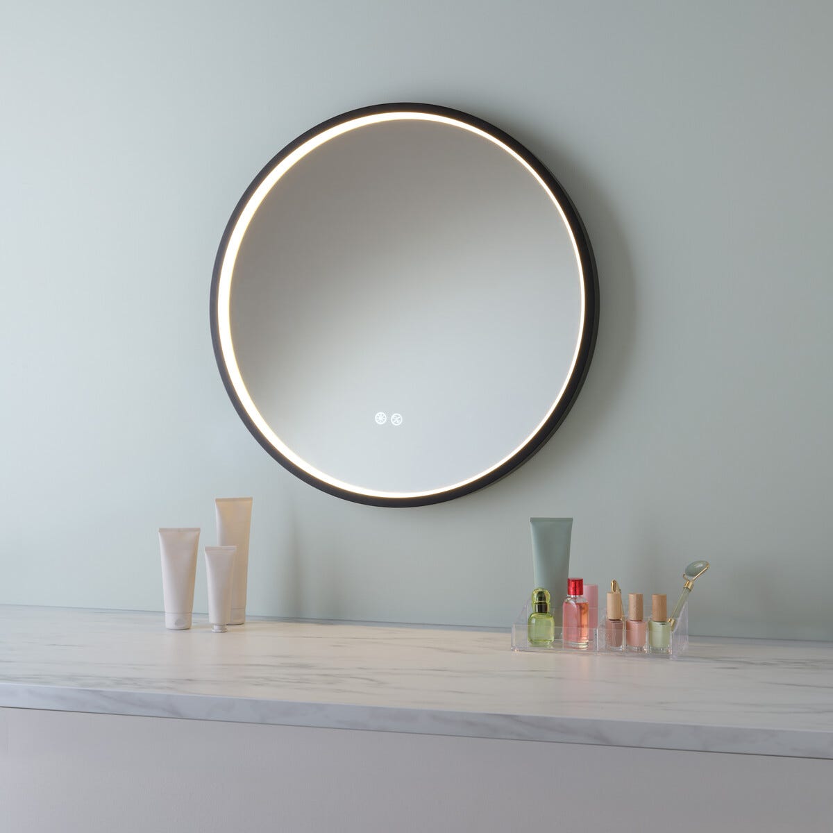 Rund badrumsspegel med dimbar belysning, svart, 60 cm