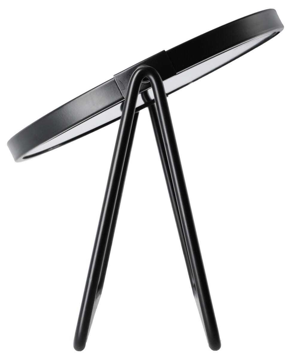 • Liten, rund sminkspegel med mattsvart finish och en spegelyta på 18 cm.