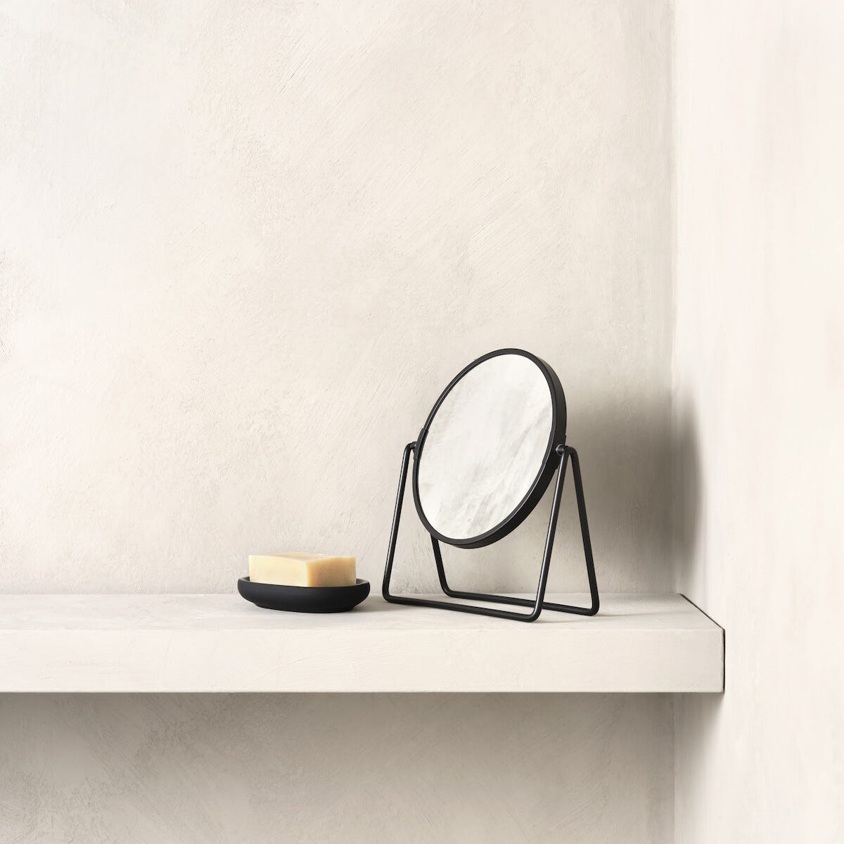 • Liten spegel med stadigt stativ av robust och lättskött stål.