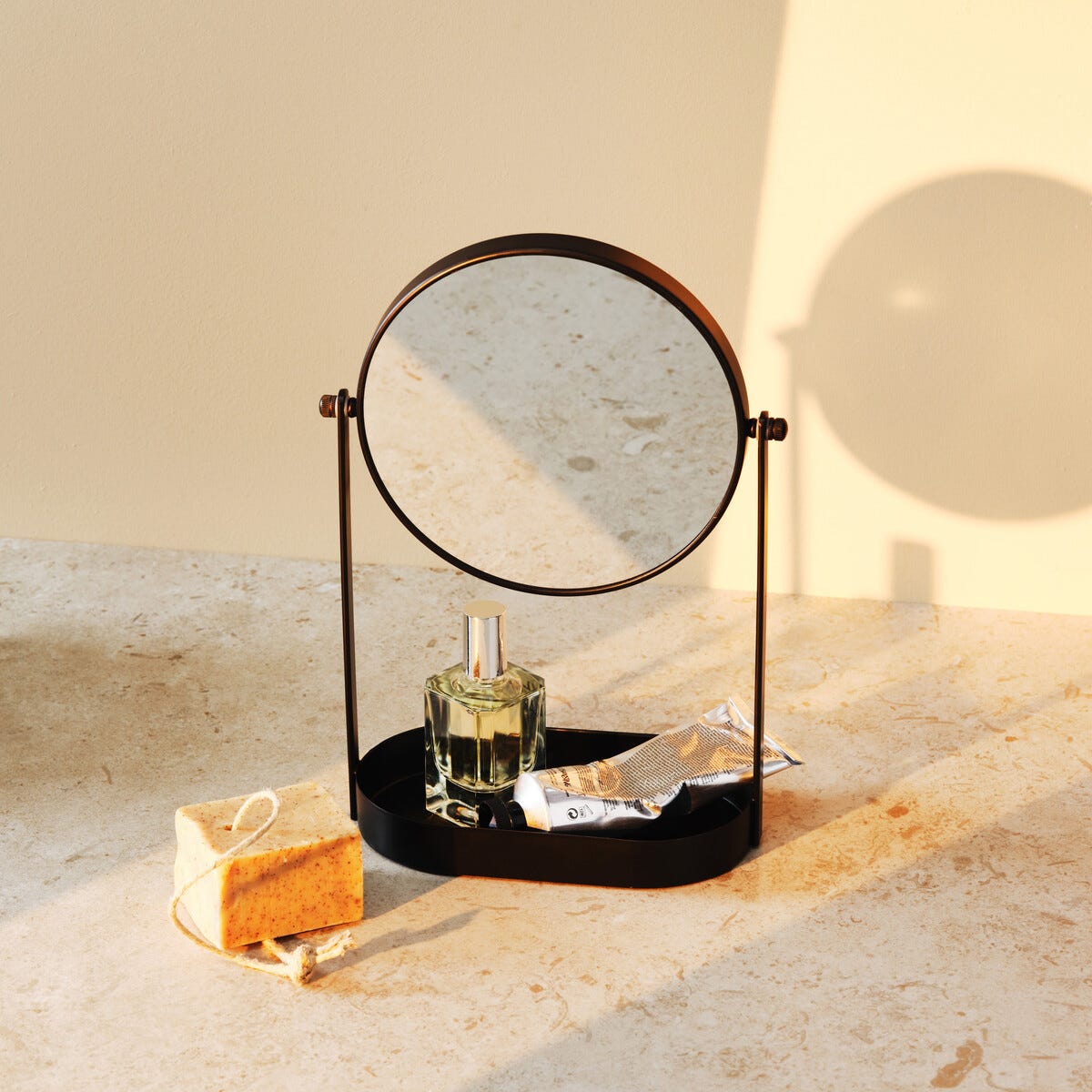 • Sminkspegel i stabil och stilren metallkonstruktion med förvaringsbricka.