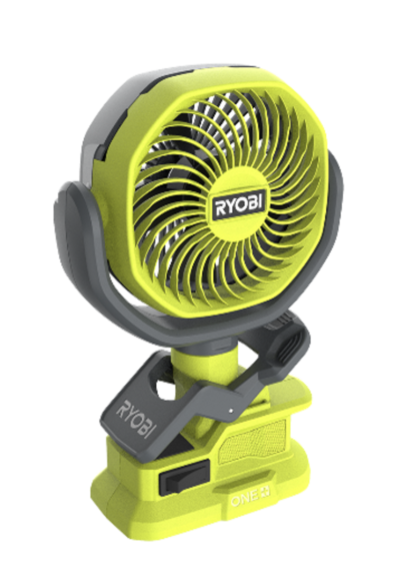 • Ryobi RCF18-0 – liten, bärbar fläkt (10 cm i diameter) med hög eller låg hastighet.