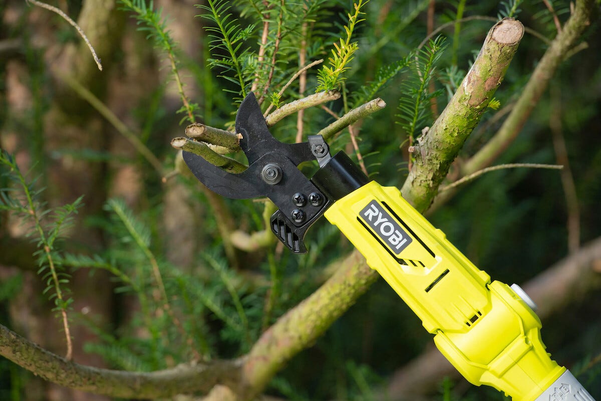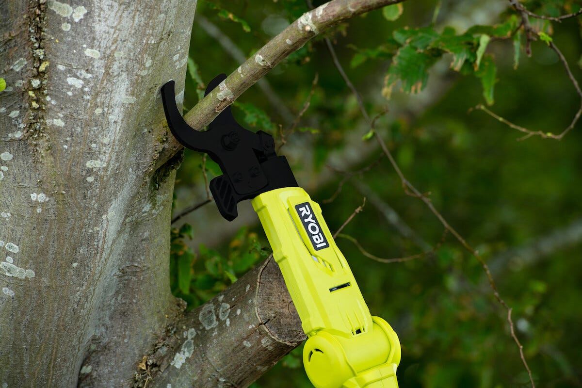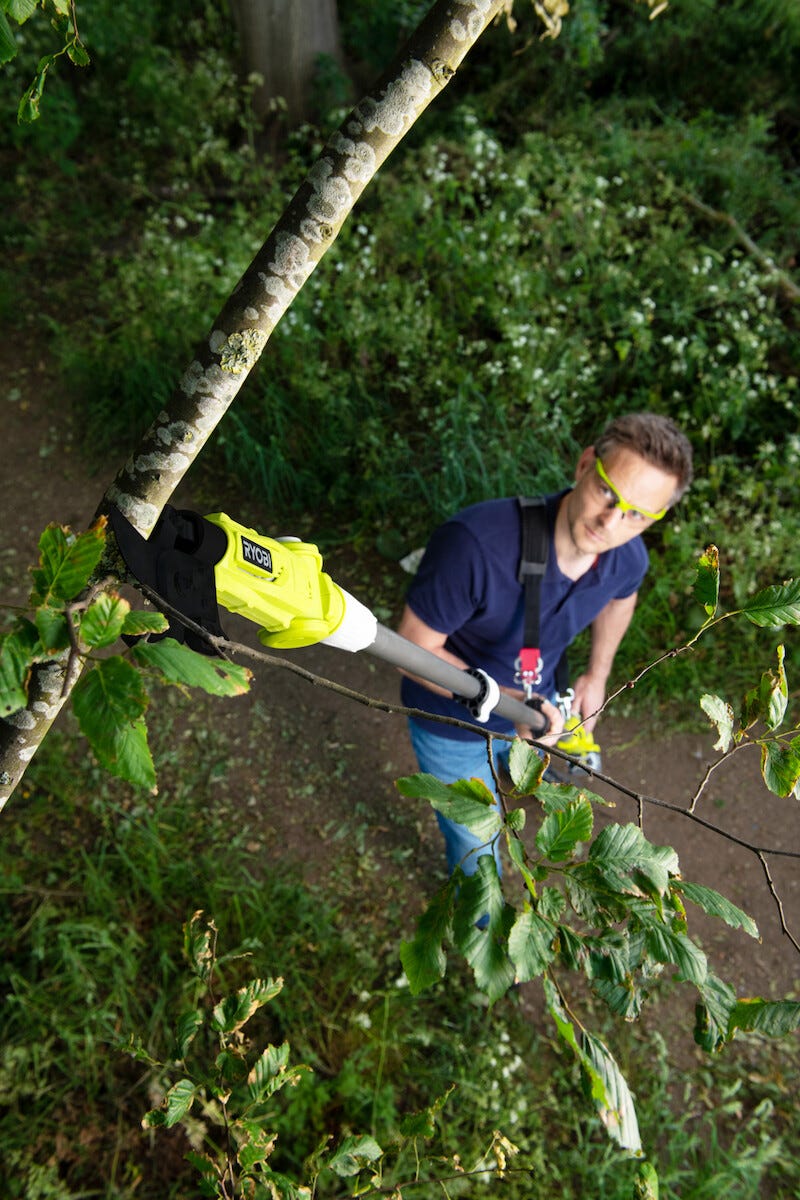 • Stångsekatör Ryobi RY18PLA – beskär på höjden utan stege.