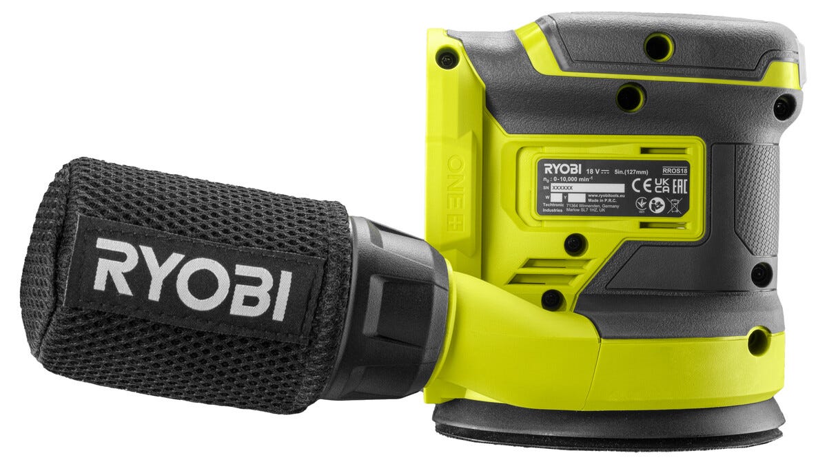 • Ryobi RROS18-0 – sladdlös excenterslip med 125 mm slipplatta.