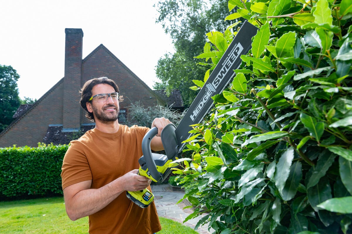 • Ryobi RY18HT45A-120 –batteridriven häcksax med 45 cm långt svärd.