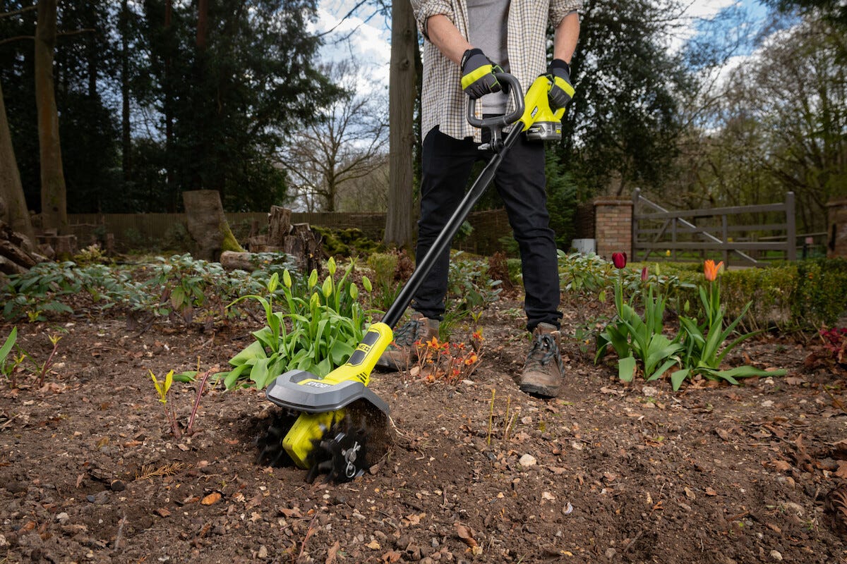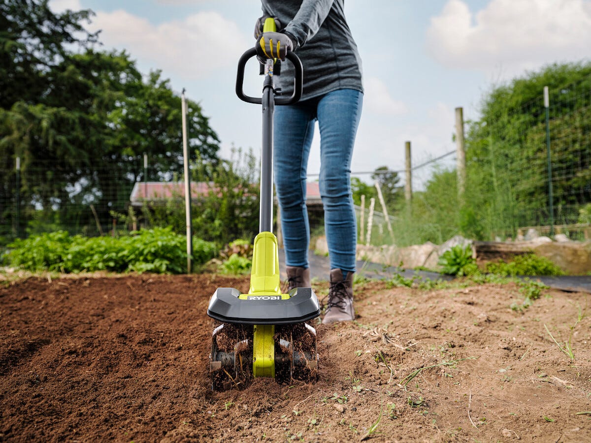 • Ryobi RY18CVA-0 – sladdlös jordfräs med en arbetsbredd på 20 cm.