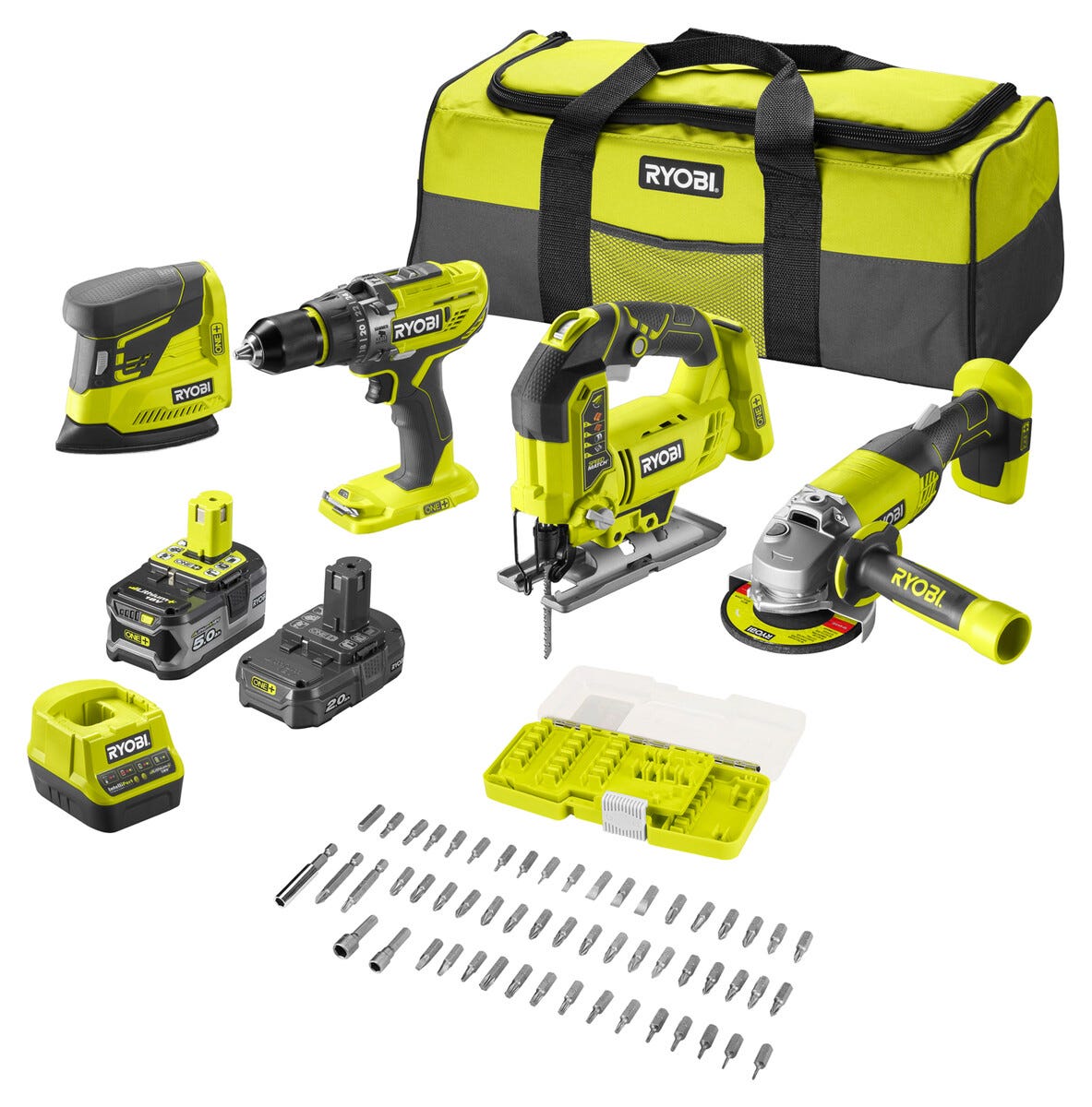 Ryobi verktygspaket 18 V, R18CK4F-252S, 9 delar
