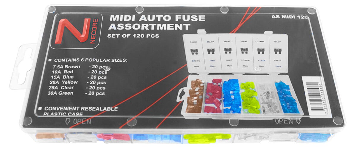 Säkringssats Midi flatstiftsäkringar, 120 st