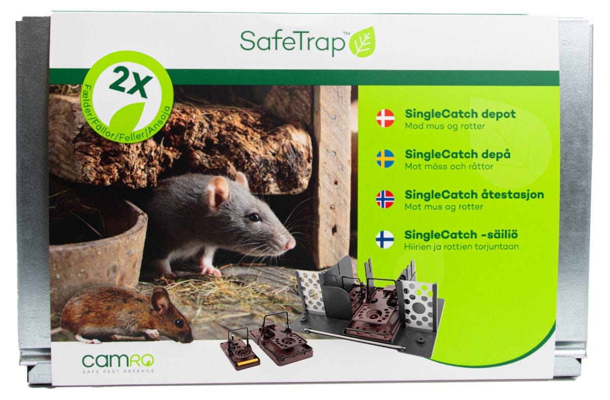 • SafeTrap SingleCatch depå med 1 musfälla och 1 råttfälla.