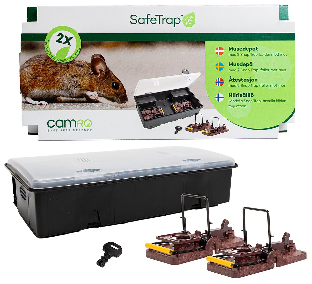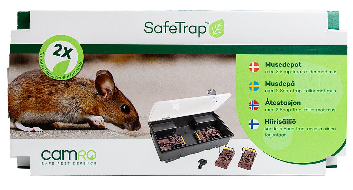 SafeTrap musfälla med 2 Snap-trap-fällor mot mus