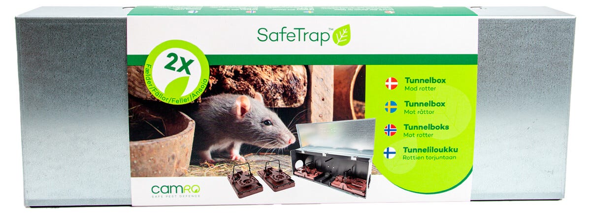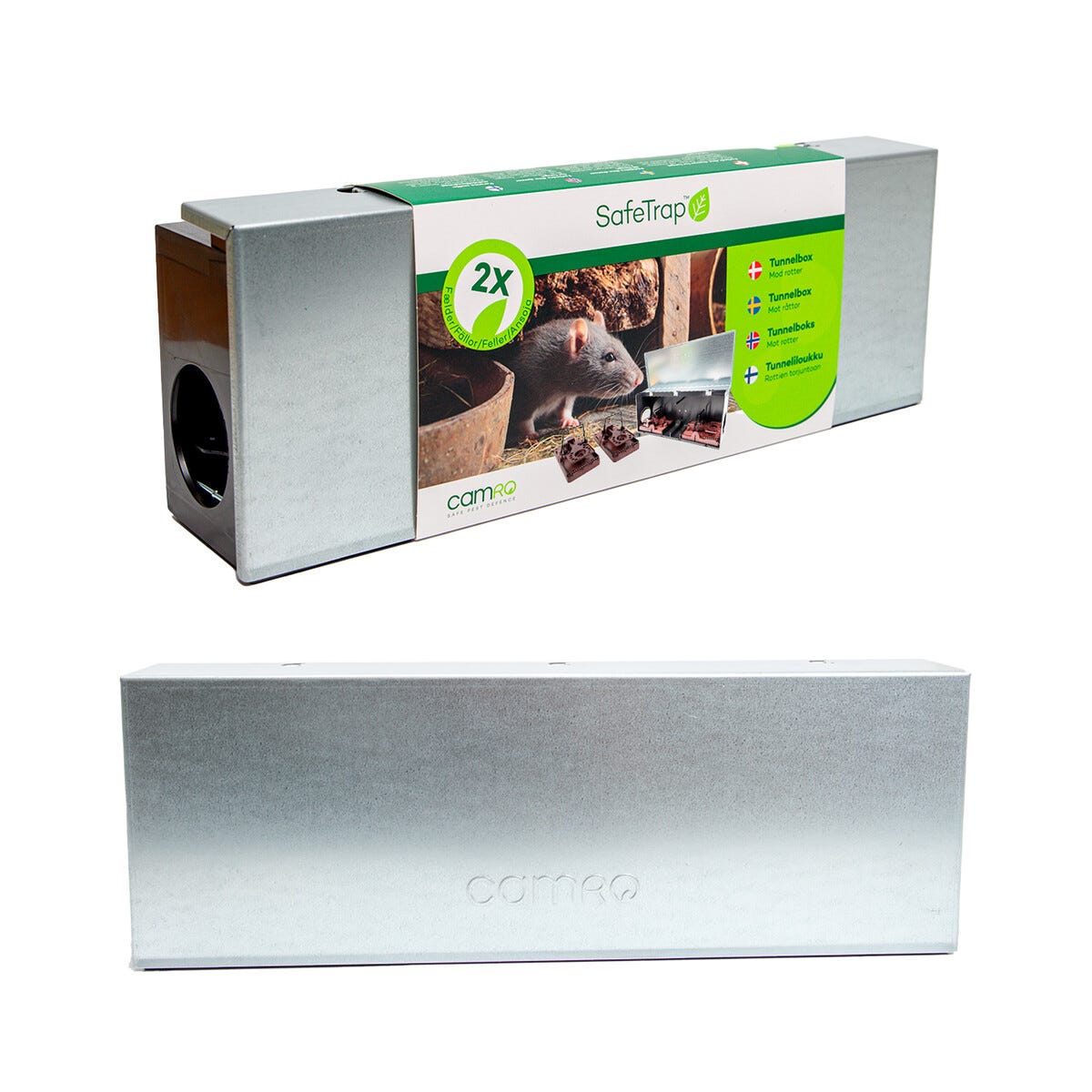 • SafeTrap tunnelbox med 2 fällor mot råtta – återanvändbar.