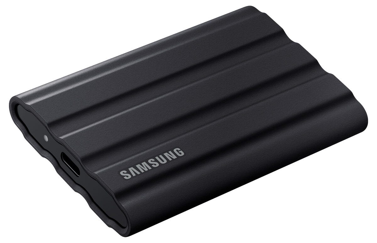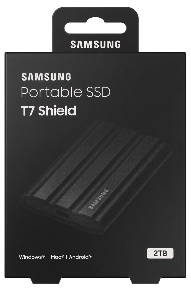 • Samsung T7 Shield SSD svart – skyddar din data mot vatten, damm och fall.
