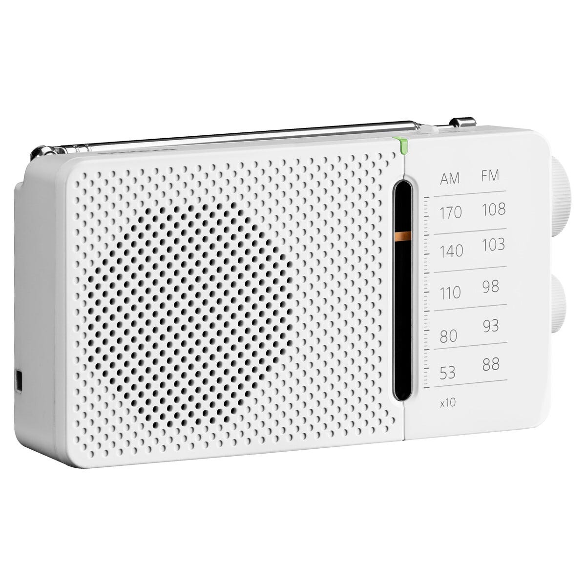 • Kompakt, portabel radio med AM/FM-mottagning och inbyggd högtalare.