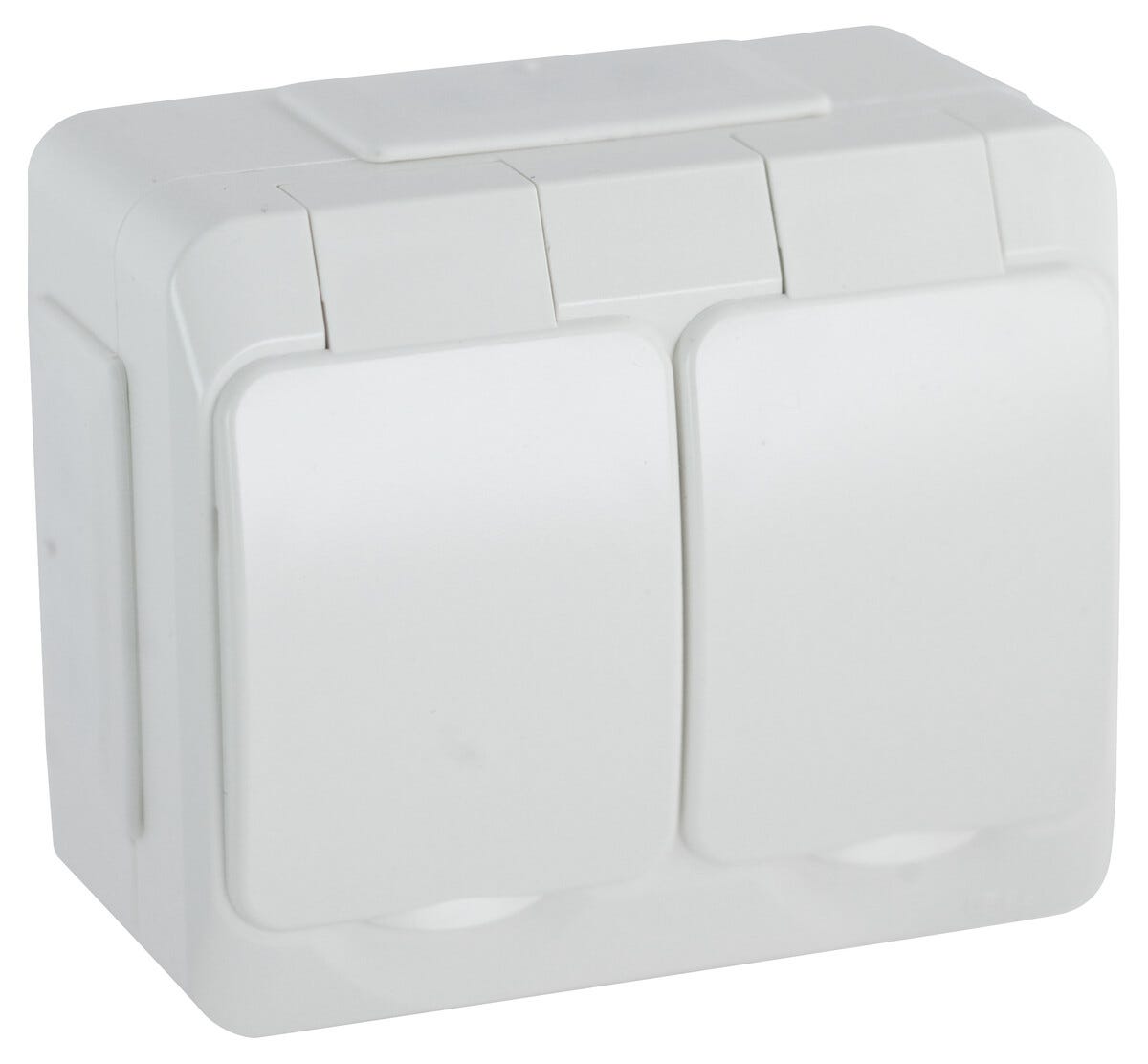 • Dubbla, jordade uttag med lucka – för utanpåliggande montage utomhus.