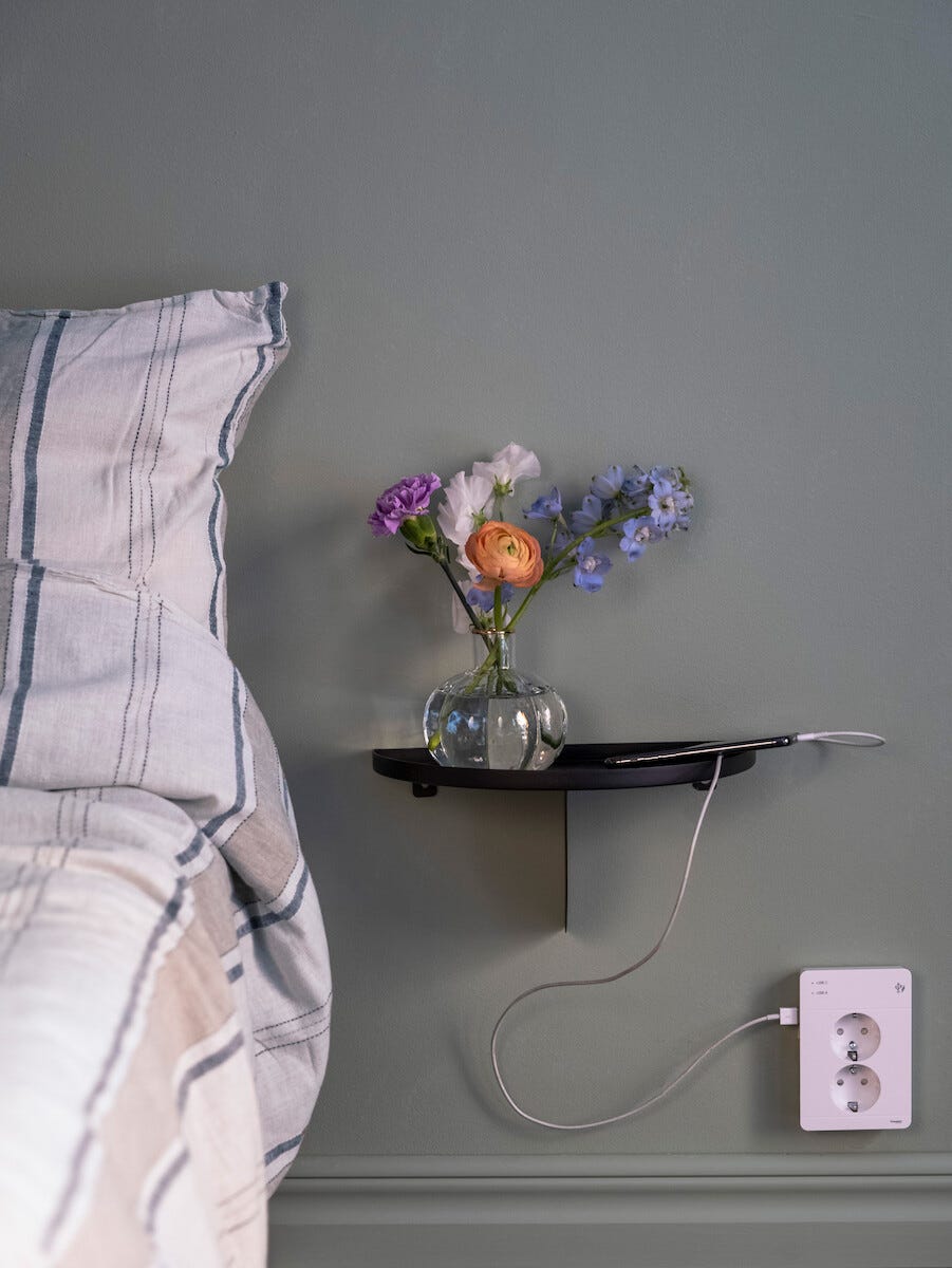 • 2-vägs vägguttag med orange LED som indikerar när dina enheter laddas.