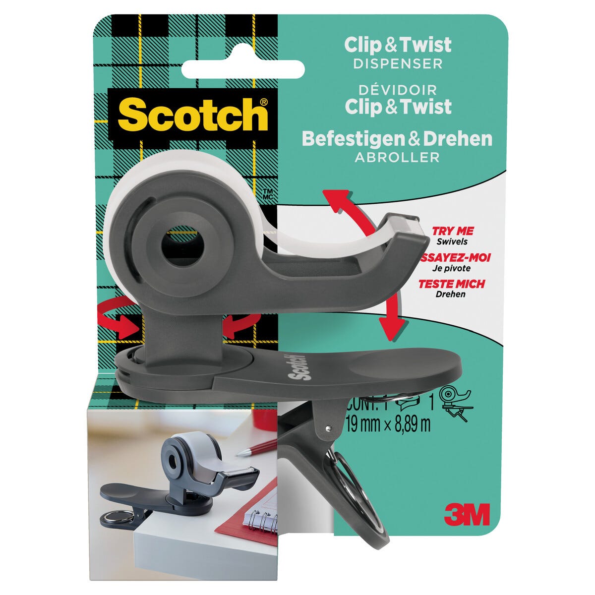 • Scotch Clip & Twist – praktisk tejphållare med transparent tejp.