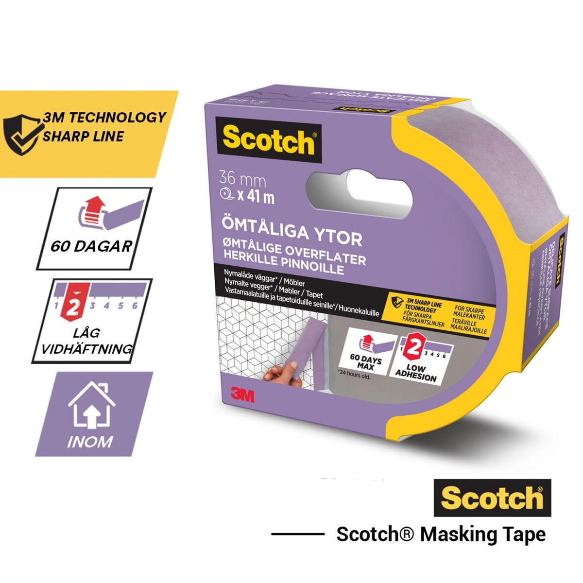 • Scotch maskeringstejp för känsliga ytor – utmärkt för precisionsarbete.