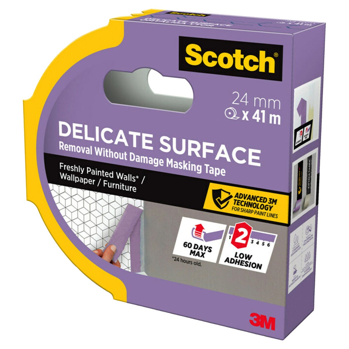 • Skonsam tejp med låg vidhäftning – passar trägolv, tapeter och möbler.