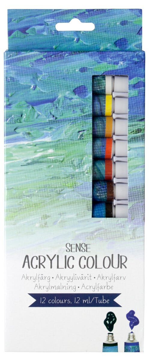 Sense Akrylfärger set med 12 färger, 12 ml per tub