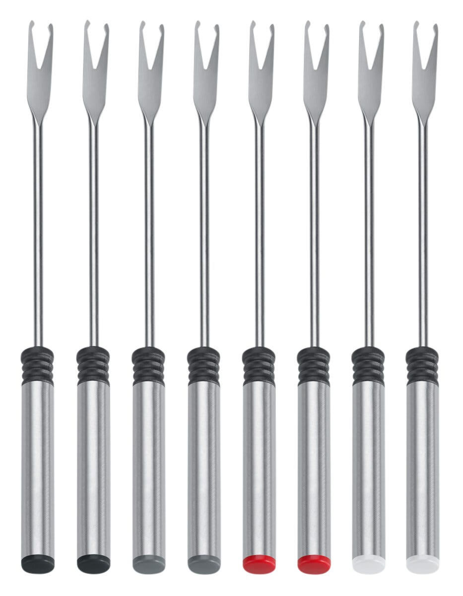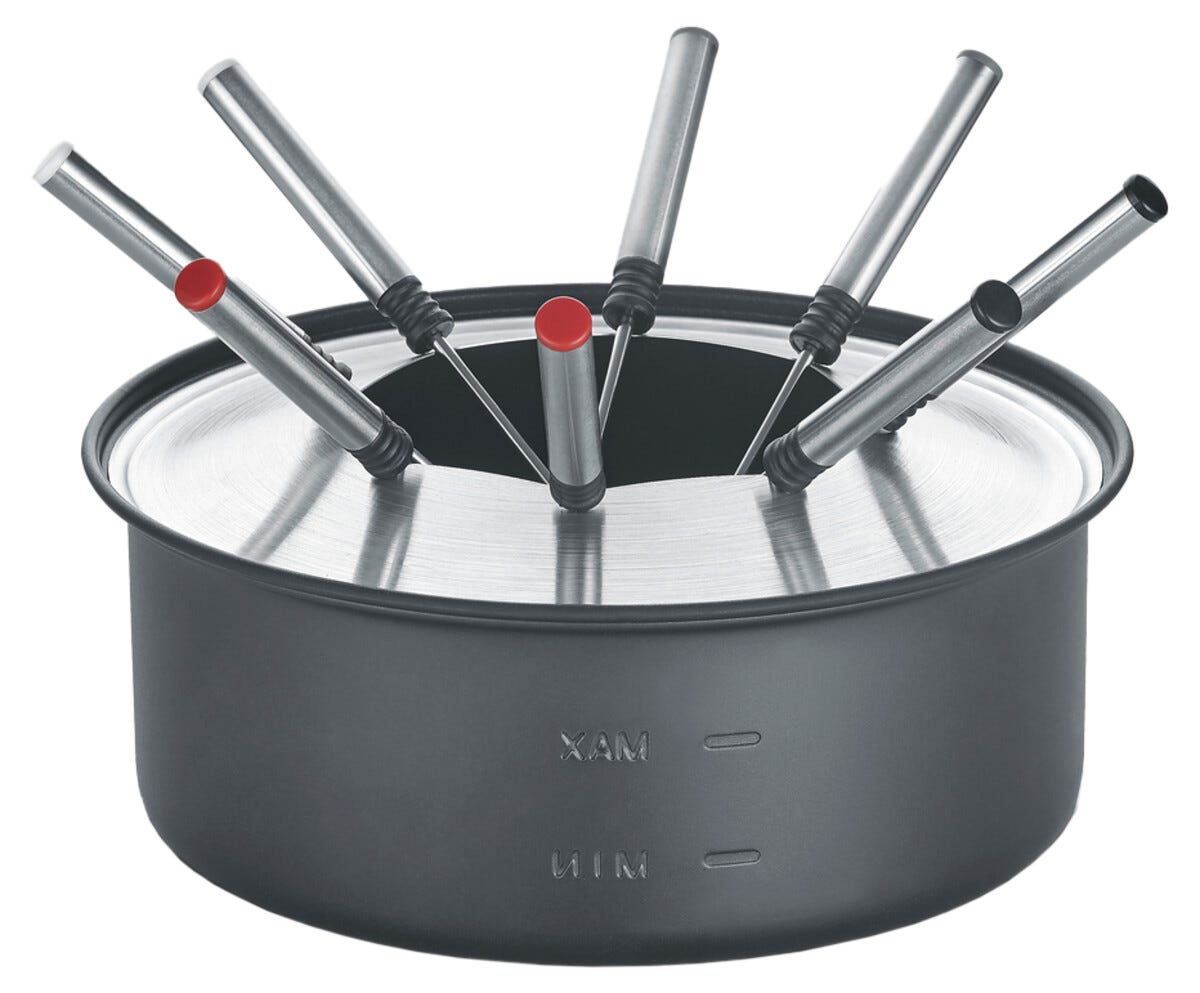 • 8 stekpannor, 8 fonduegafflar, fonduegryta och stekspade ingår.