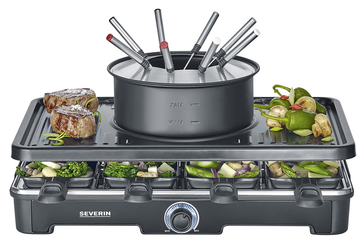 • Severin Raclette/Fondue RG 2347 – platssparande och flexibel kombigrill.