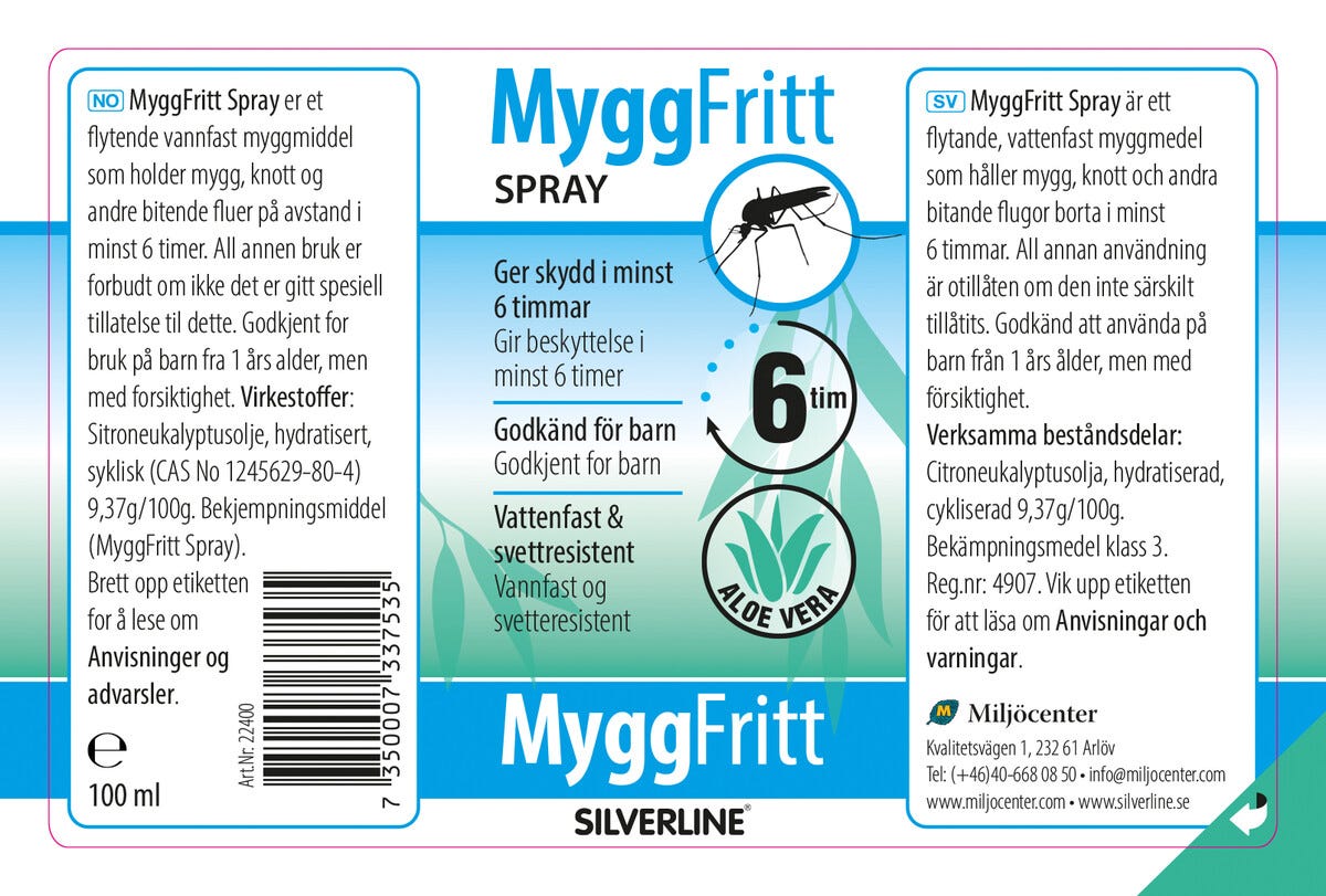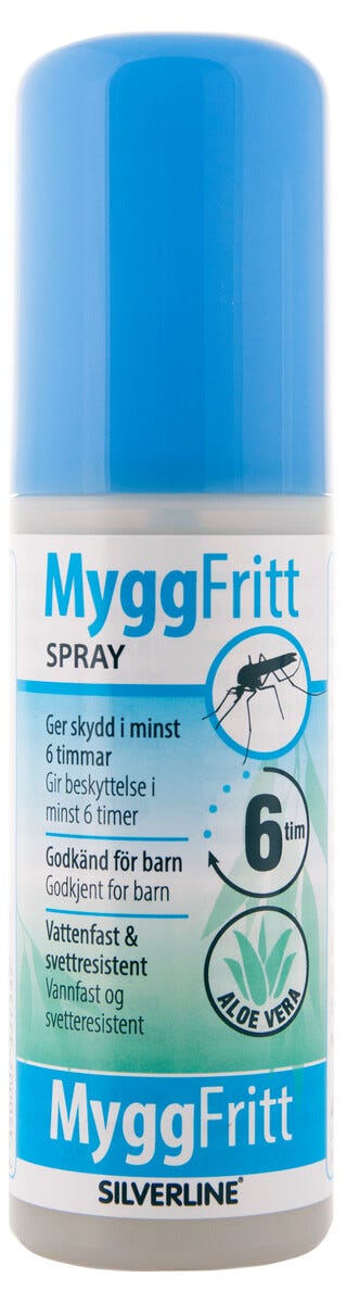 • Silverline myggfritt – hudvänlig myggspray med mjukgörande Aloe Vera.