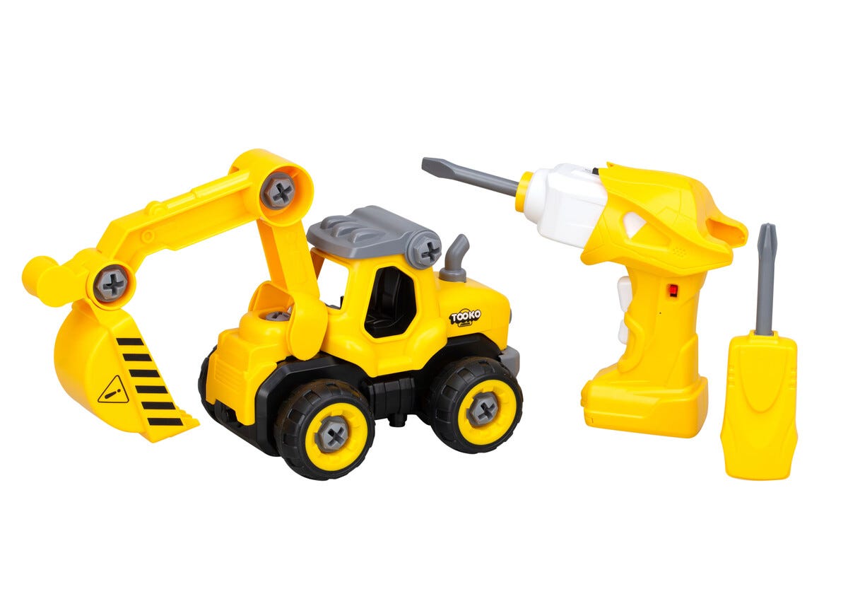 • Bygg själv ihop grävmaskinen och kör sedan runt med den.