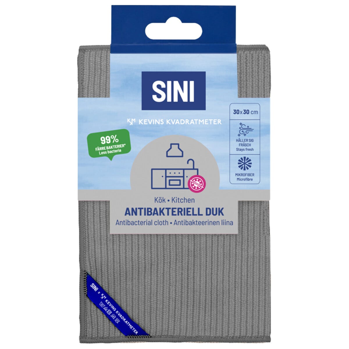 • Sini mikrofiberduk för kök – rengör och polerar utan ränder eller ludd.