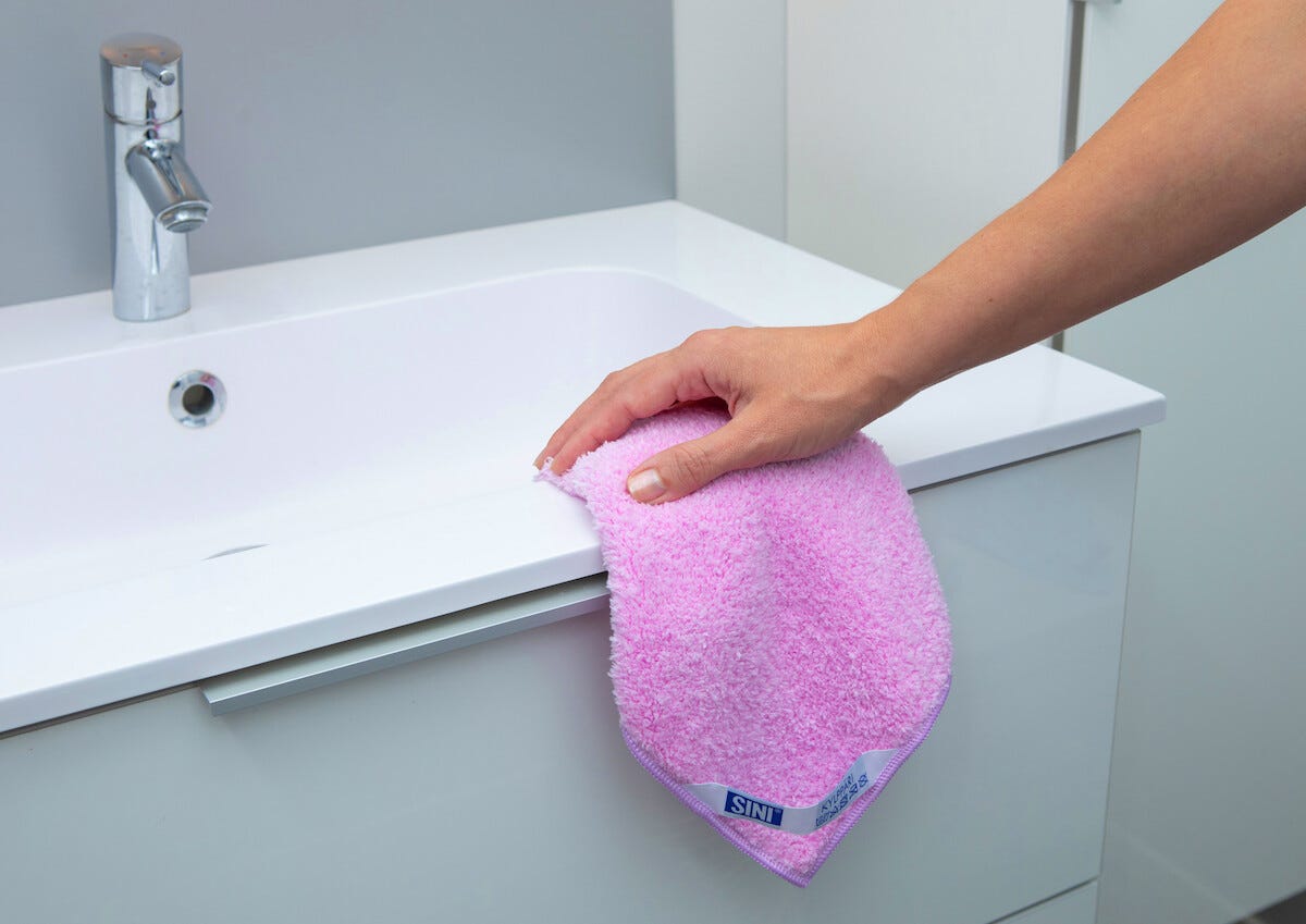 • Sini mikrofiberduk för badrum – polerar ytan blank och ren.