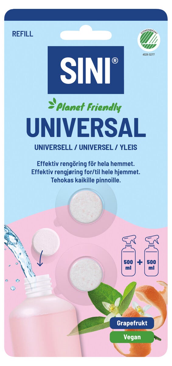 • Sini refill för allrengöring – rengör de flesta ytor i ditt hem.