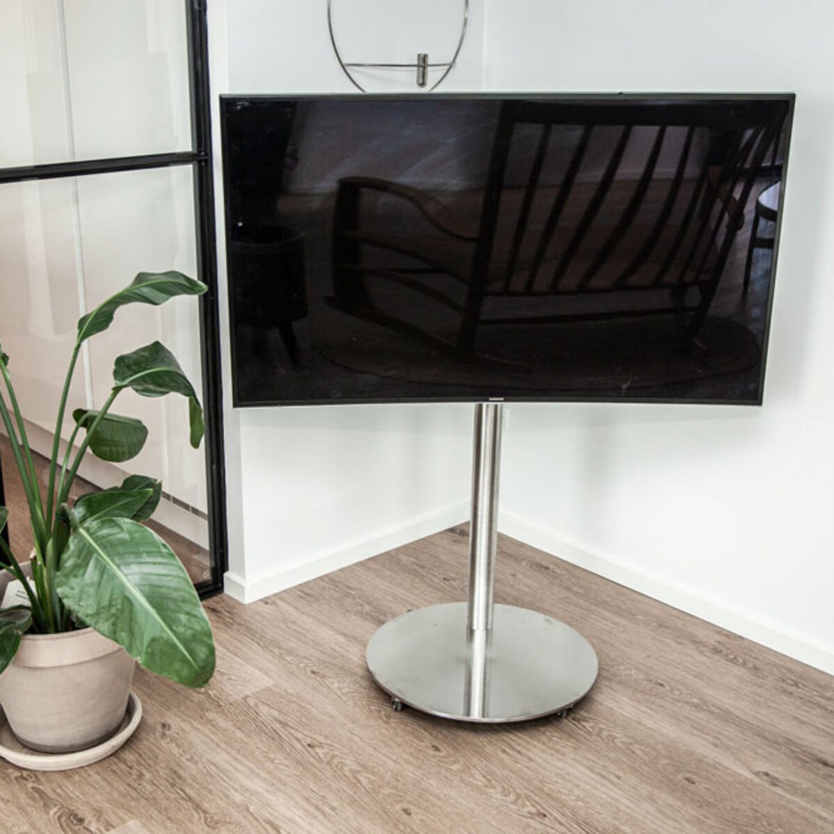 • Stilrent golvstativ med dansk design och dold kabeldragning.