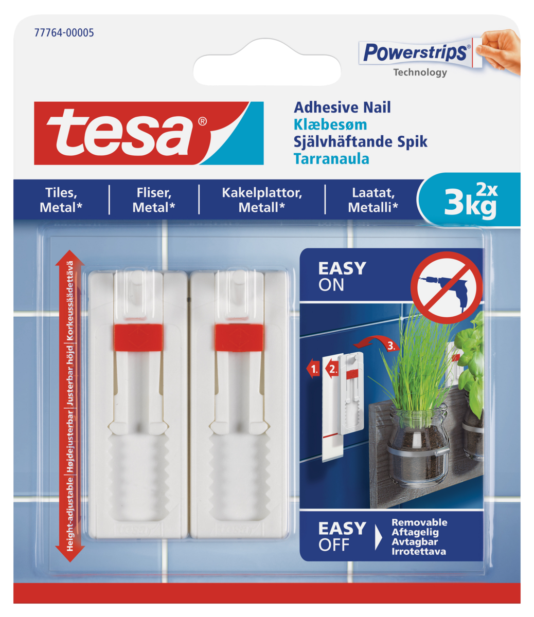 • Självhäftande spik som sitter säkert och är enkel att flytta.