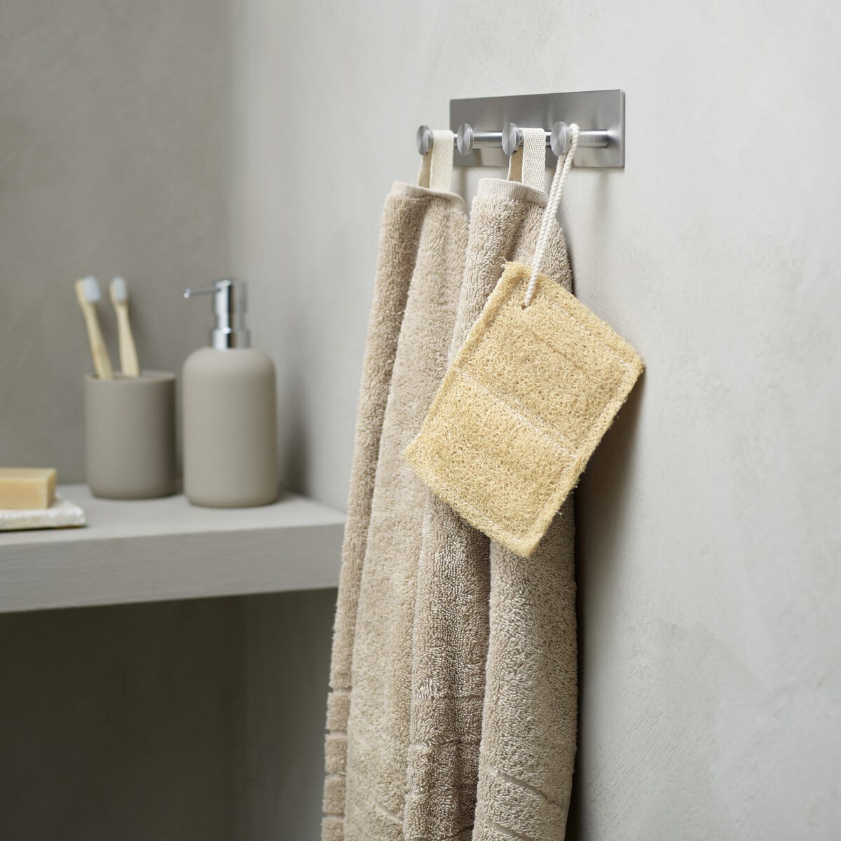 • Praktisk handdukshållare – formen hindrar handdukarna från att glida av.