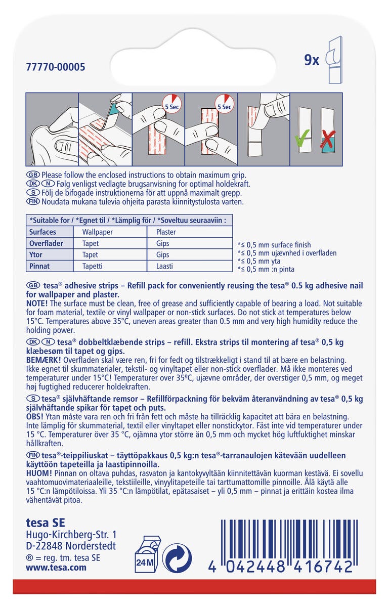 • Lämpligt alternativ till spik och skruv - lämnar inga fula märken.