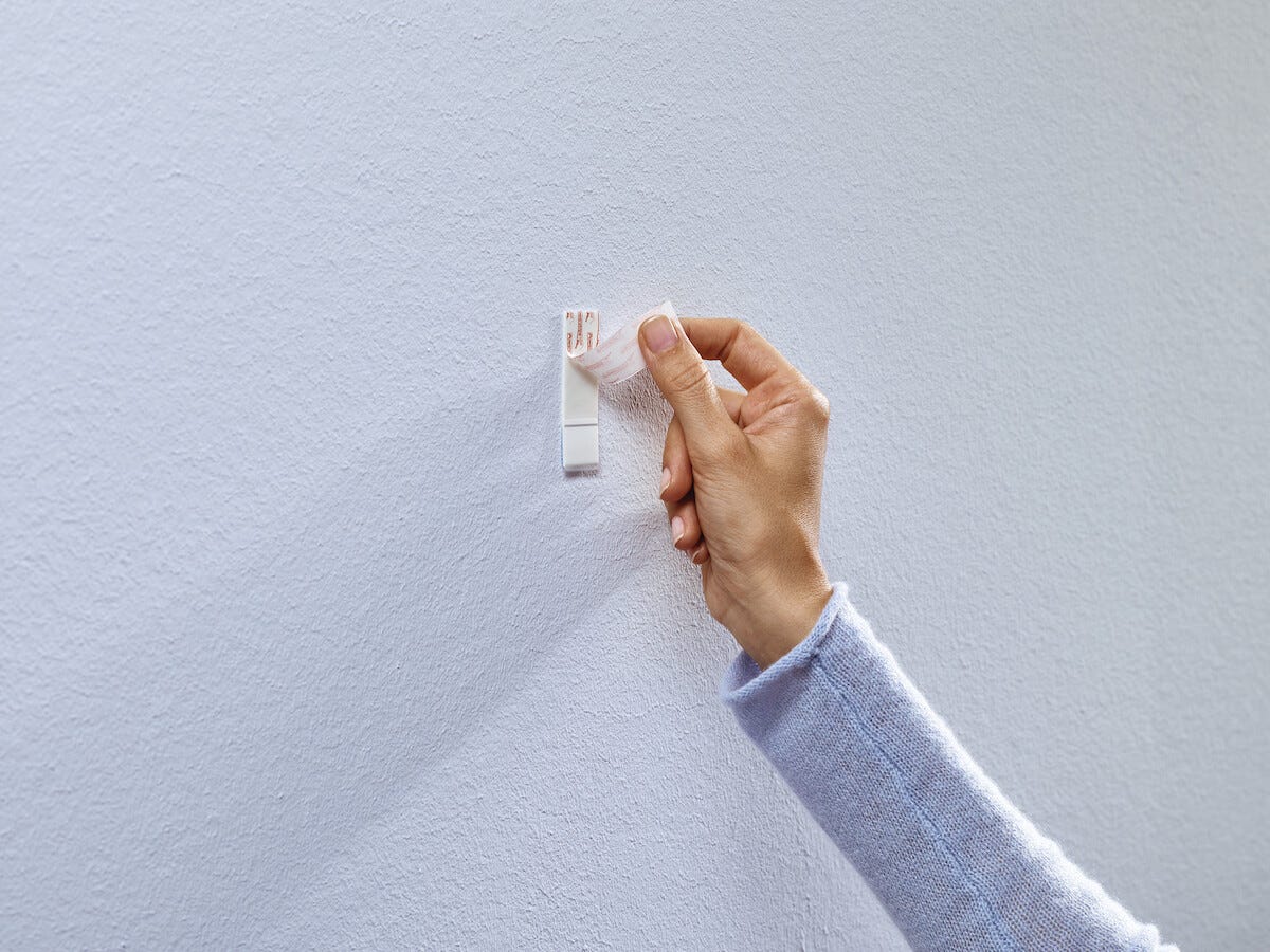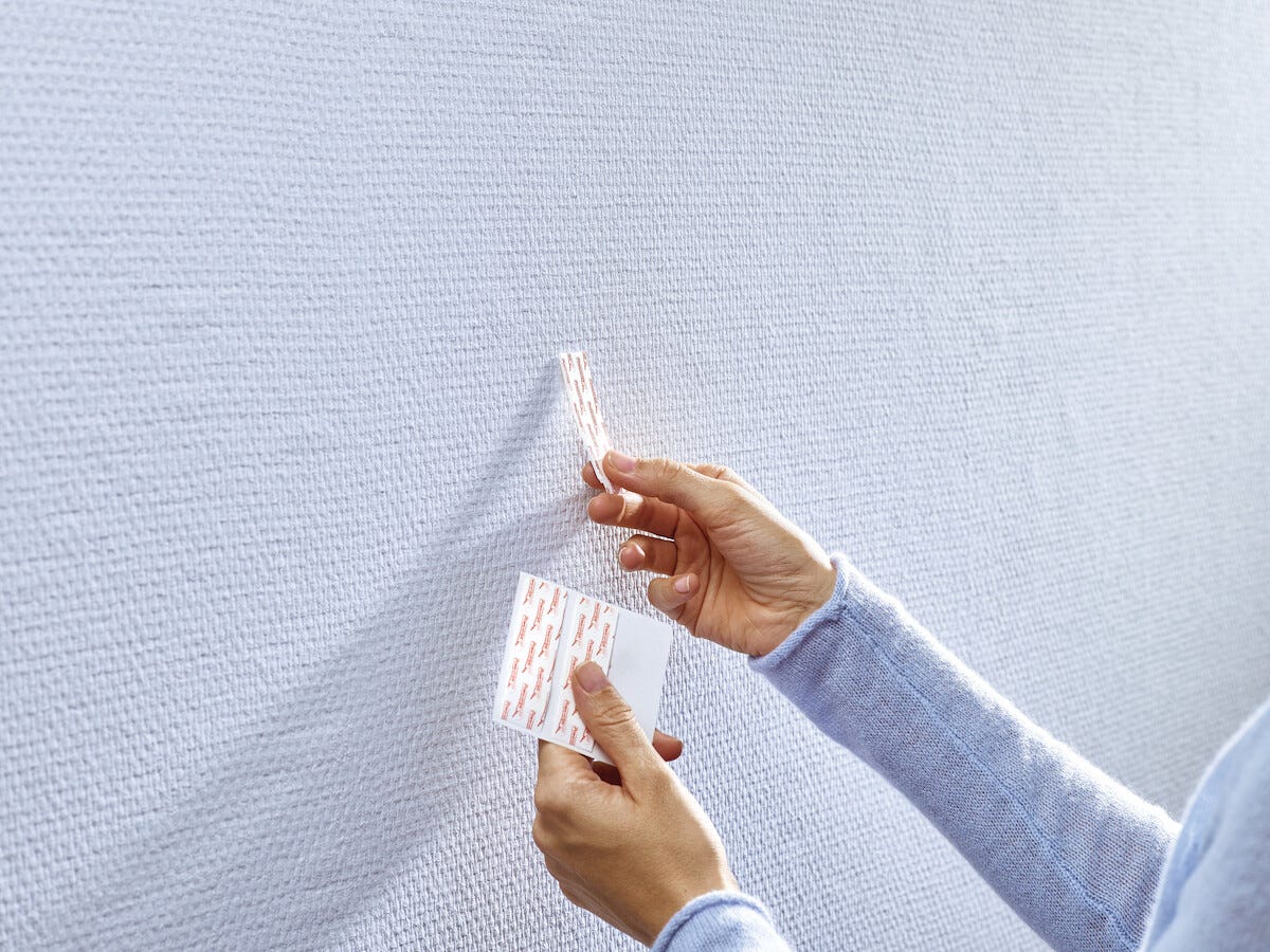 • Självhäftande remsor som sitter säkert och är enkla att flytta.