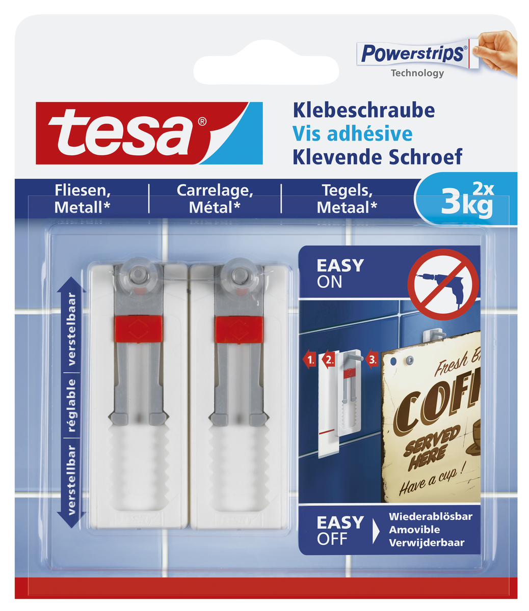• Självhäftande skruv som sitter säkert och är enkel att flytta.