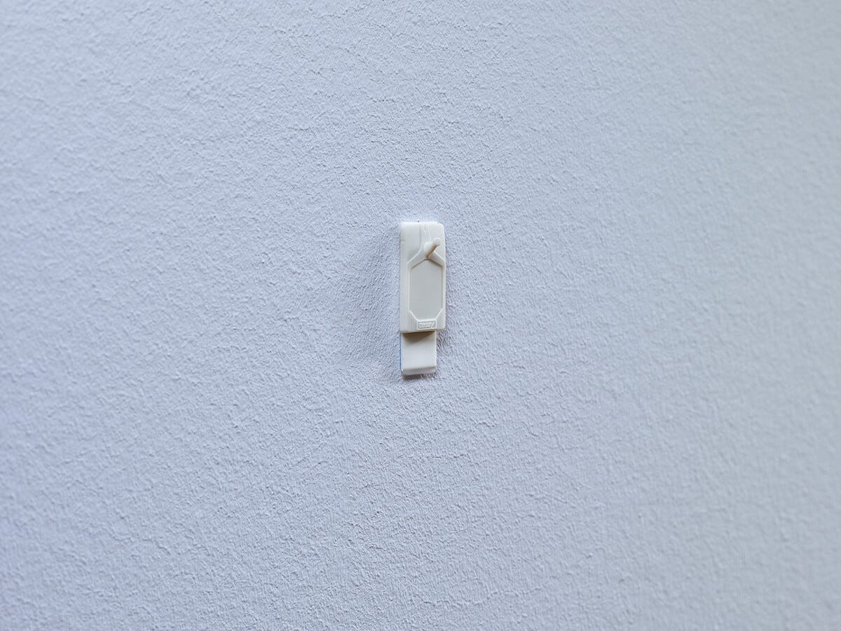 • Självhäftande spik som sitter säkert och är enkel att flytta.