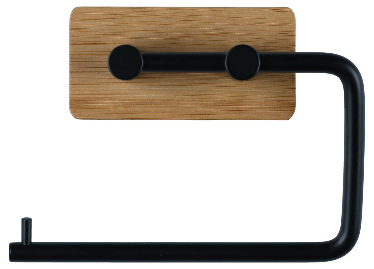 Självhäftande toalettpappershållare, bambu och svart metall